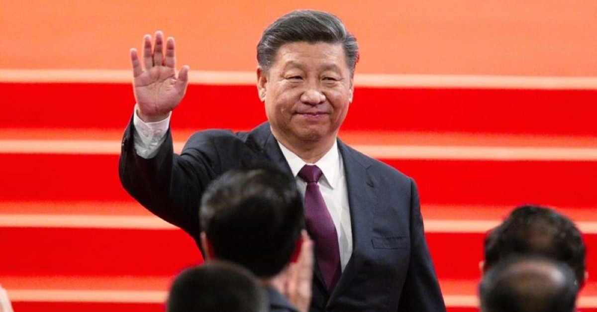 Chinese President Xi Jinping waves during an inauguration ceremony to mark the 20th anniversary of the former Portuguese colony's handover to Chinese rule, Macao, Dec. 20, 2019. (AP Photo)