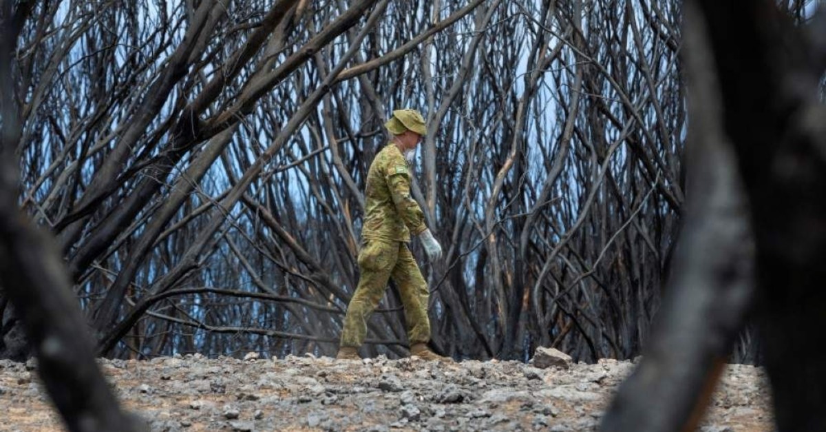 A soldier removes deceased wildlife from the Hanson Wildlife Sanctuary for burial, on Kangaroo Island, South Australia, during Operation Bushfire Assist, Jan. 11, 2020. (Reuters Photo)