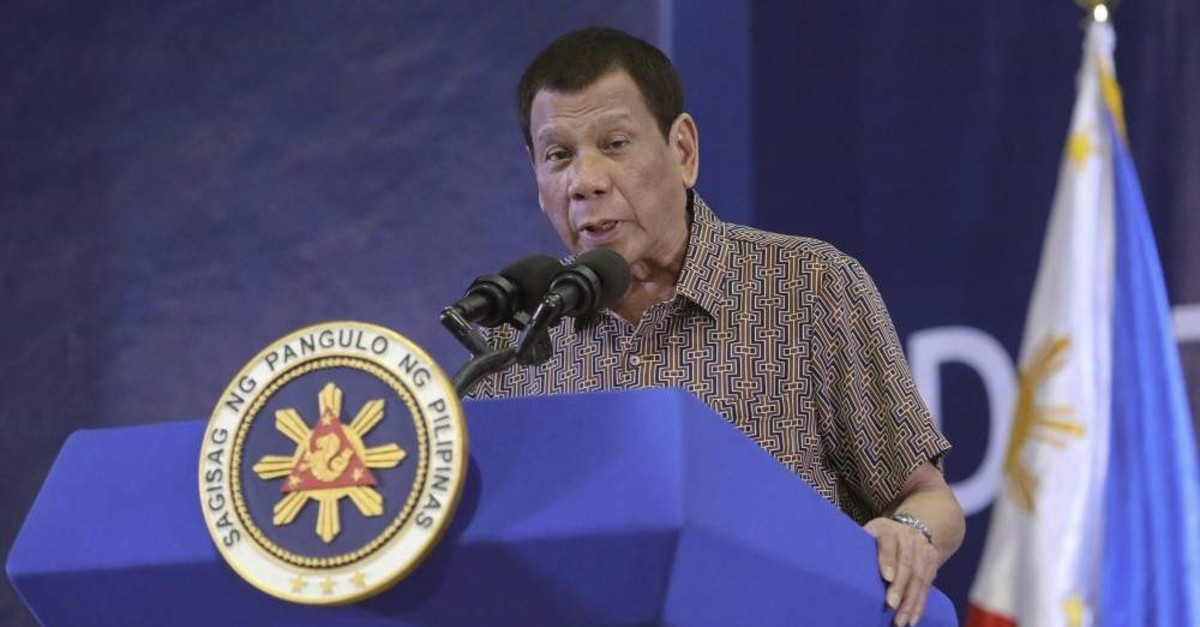 Philippine President Rodrigo Duterte delivers his speech at the San Isidro Central School, Jan. 23, 2020. (AP Photo)