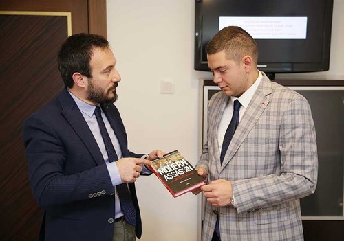 Author of the book Abdülkadir Özkan (L) with Daily Sabah's Kutayhan Yıldırım