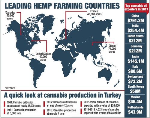 In terms of capacity, Turkey produced 5,000 tons of cannabis in 1961 and only 7 tons in 2018. "This is a very negatively decoupling trend from the global trends," Atalık said and gave an example, "France produces 80,000 tons of hemp and China's cannabis yield hovers at around 15,000 tons."