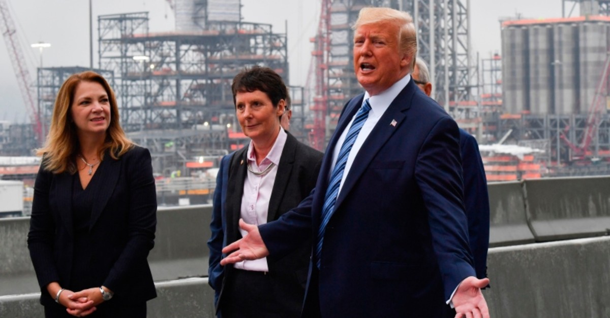"We will leave if we have to," Trump told a cheering audience of workers at a Shell chemical plant in Pennsylvania.