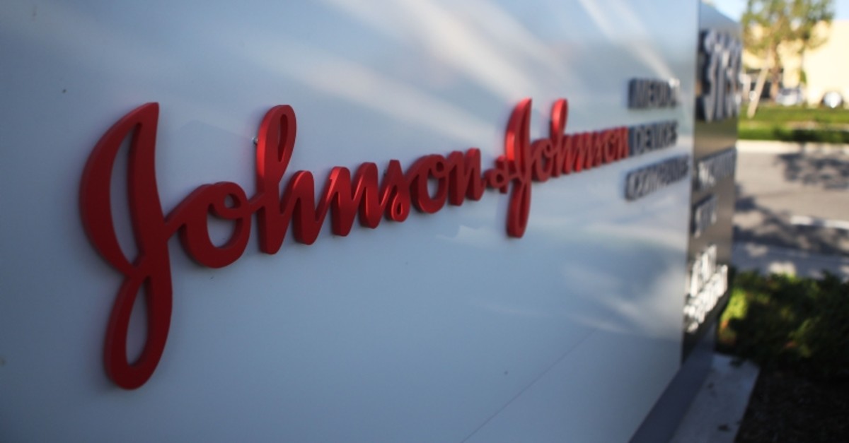 A sign is posted at the Johnson & Johnson campus on Aug. 26, 2019 in Irvine, California (AFP Photo)