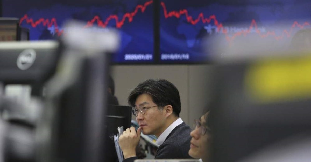 A currency trader watches monitors at the foreign exchange dealing room of the KEB Hana Bank headquarters in Seoul, South Korea, Jan. 22, 2020. (AP Photo)