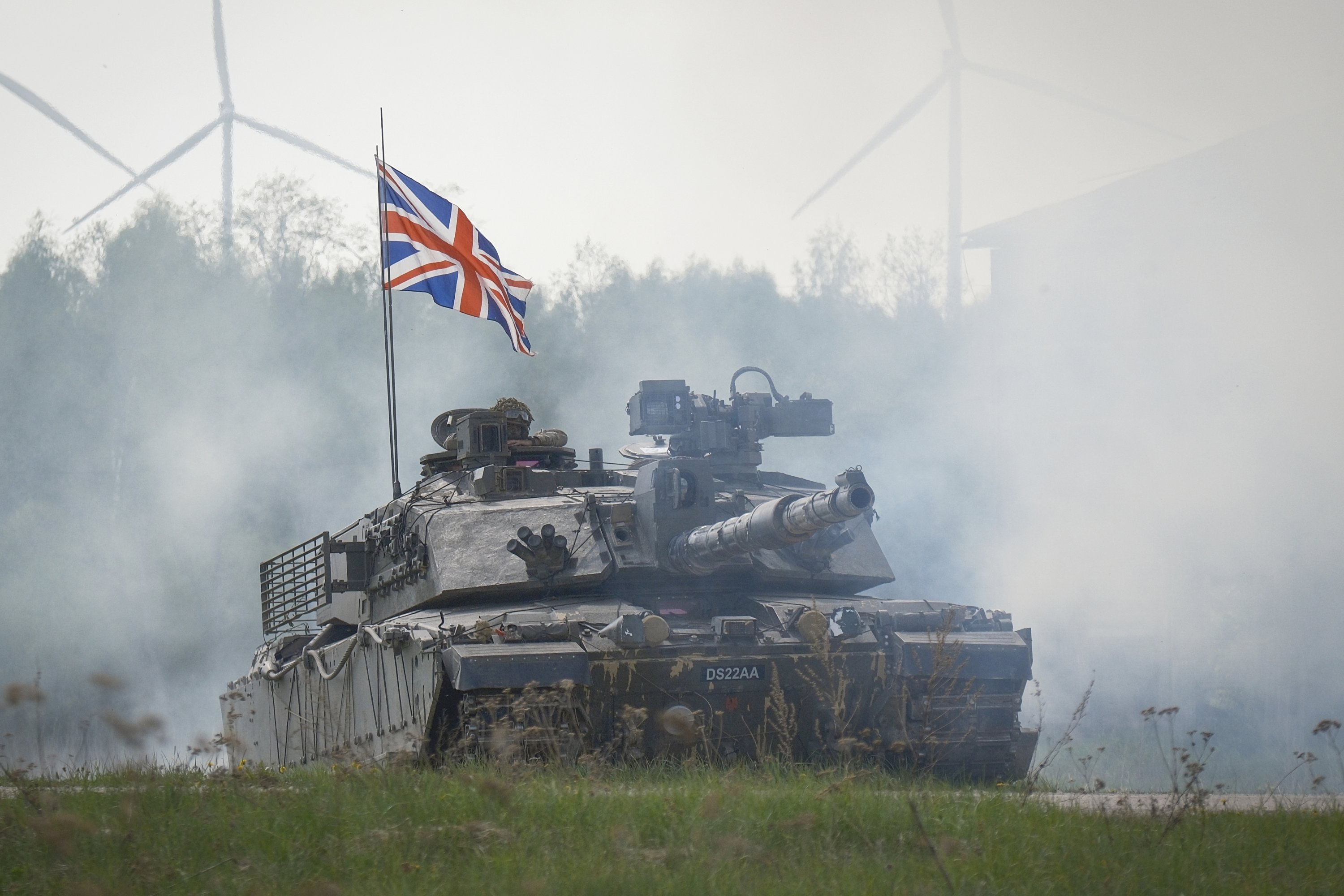 A Challenger 2 main battle tank of the British forces during the NATO's Spring Storm exercise in Kilingi-Nomme, Estonia, May 15, 2024. (AP Photo)
