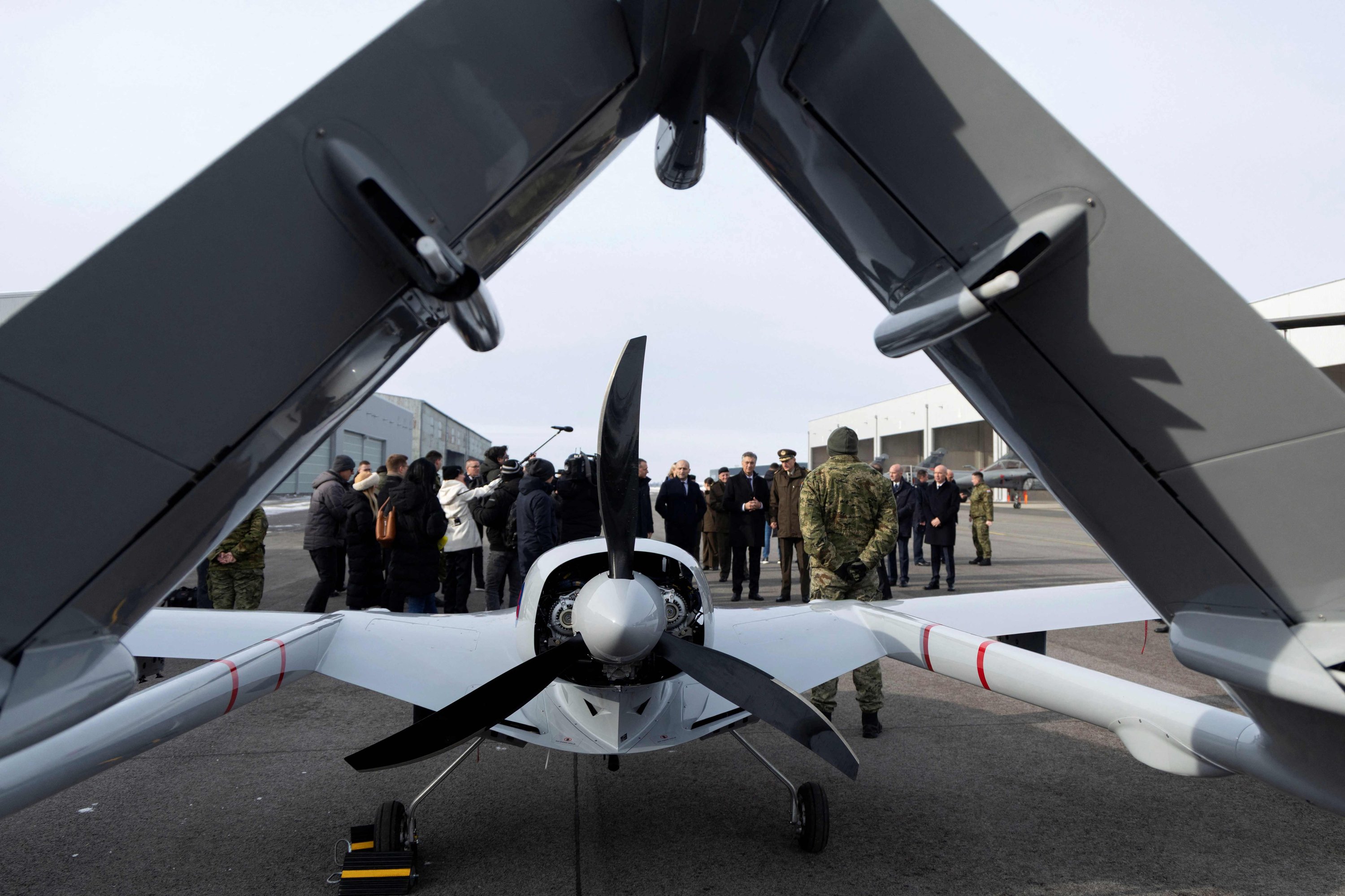 Croatia's Turkish-made Bayraktar TB2 combat drones are displayed at a military base near Zagreb, Croatia, Jan. 12, 2026. (AFP Photo)