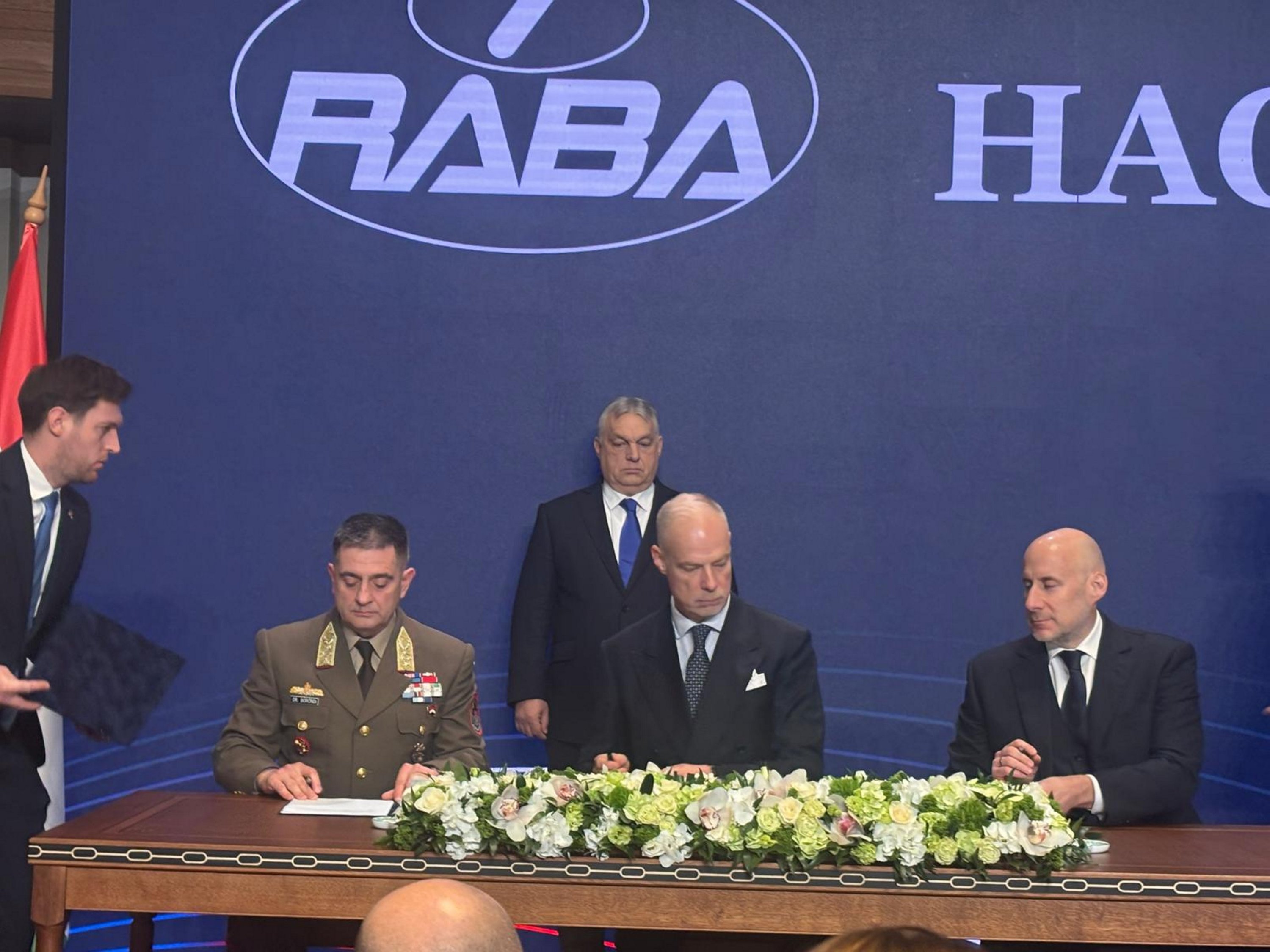 The contract for Gidran 4x4 vehicles was signed between the Hungarian Ministry of Defense, the Hungarian Armed Forces, and 4iG Space and Defence Technologies in the presence of Hungarian Prime Minister Viktor Orban, Budapest, Hungary, March 3, 2026. (AA Photo/Nurol Makina)