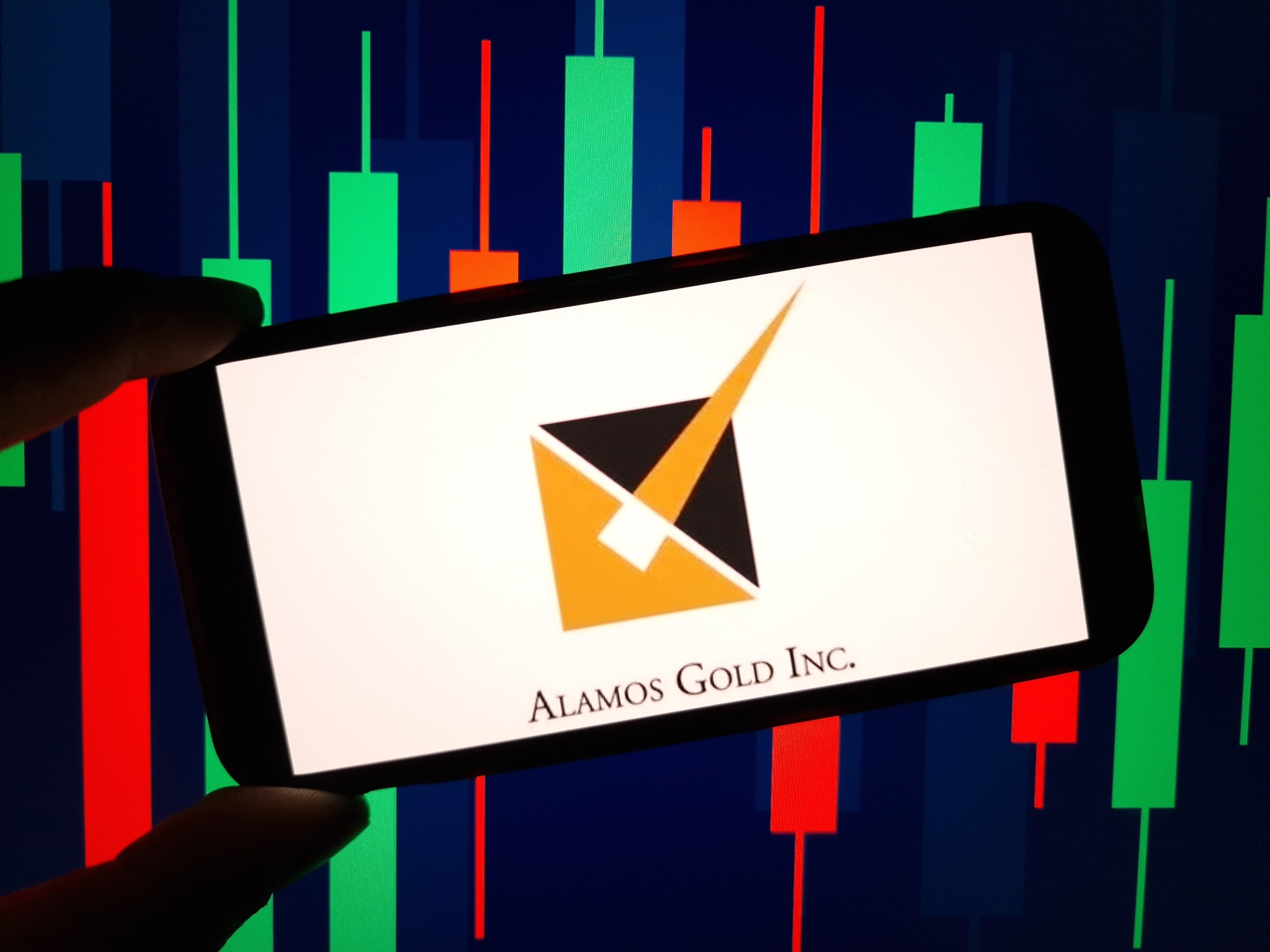 Alamos Gold company logo displayed on a mobile phone in Konskie, Poland, May 30, 2024. (Shutterstock Photo)