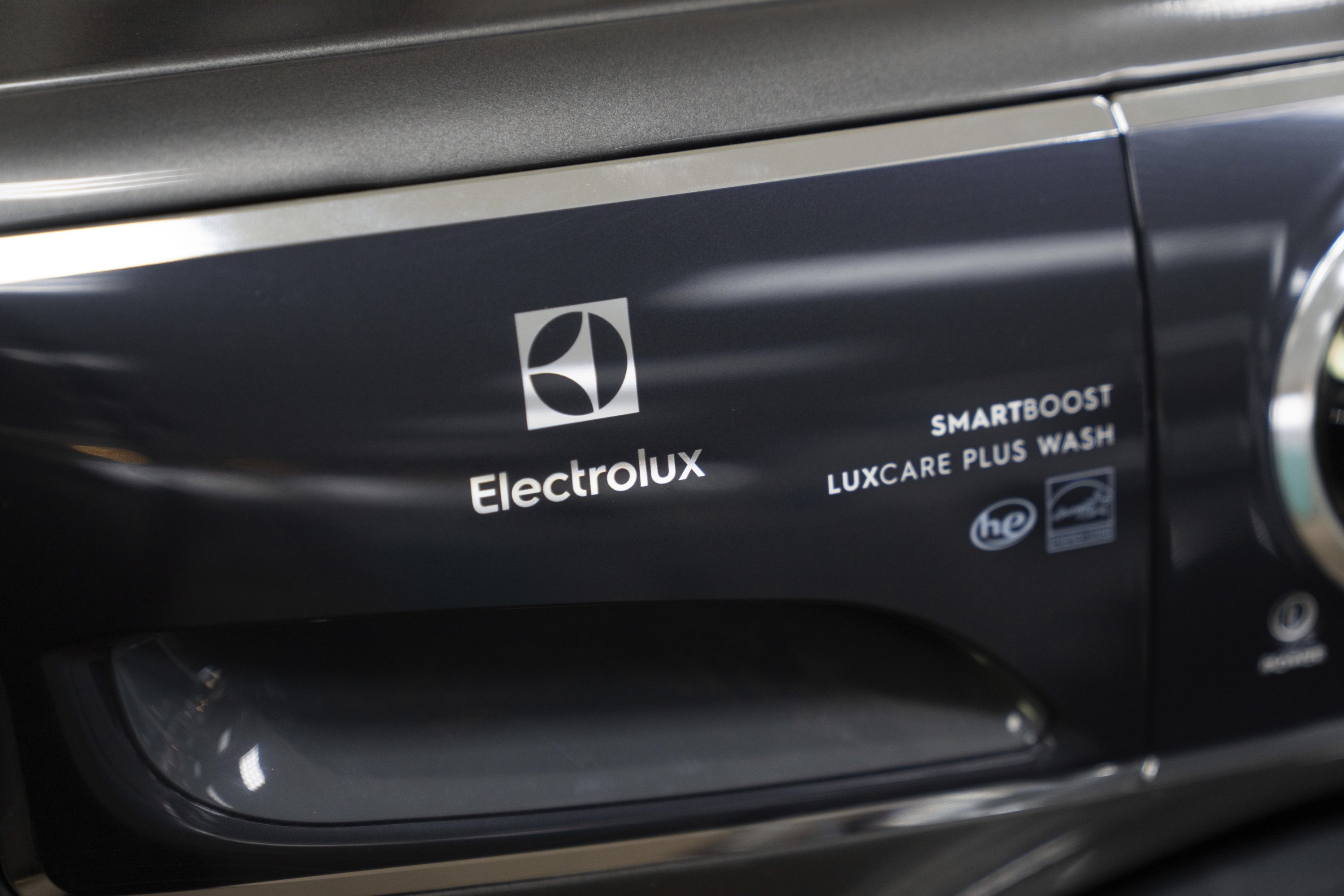 A logo of Electrolux is seen at Riegelmann's Appliance store, Gresham, Oregon, U.S., April 3, 2025. (AP Photo)