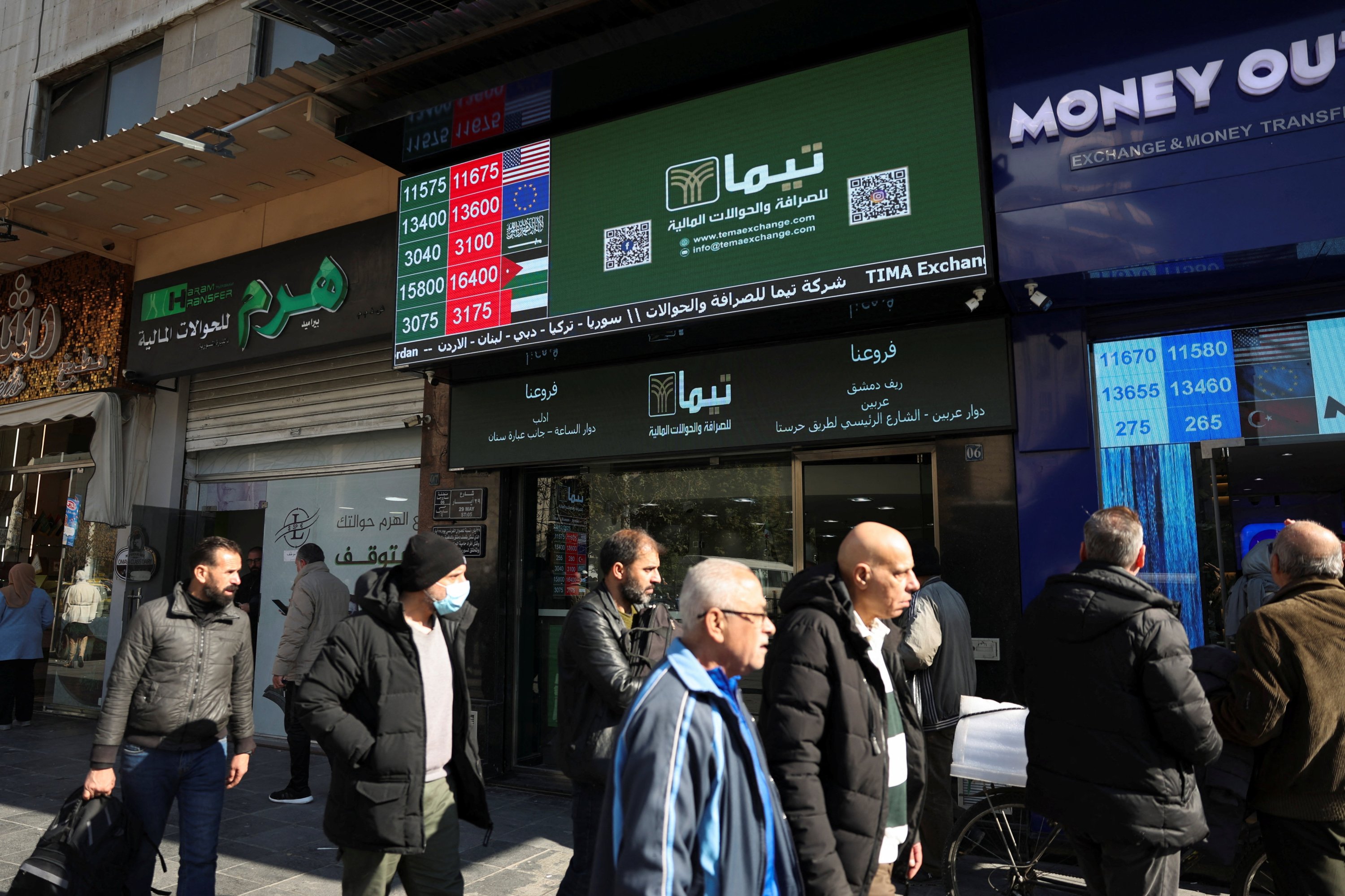 People pass by a currency exchange and money transfer shop in Damascus, Syria, Dec. 18, 2025. (Reuters Photo)