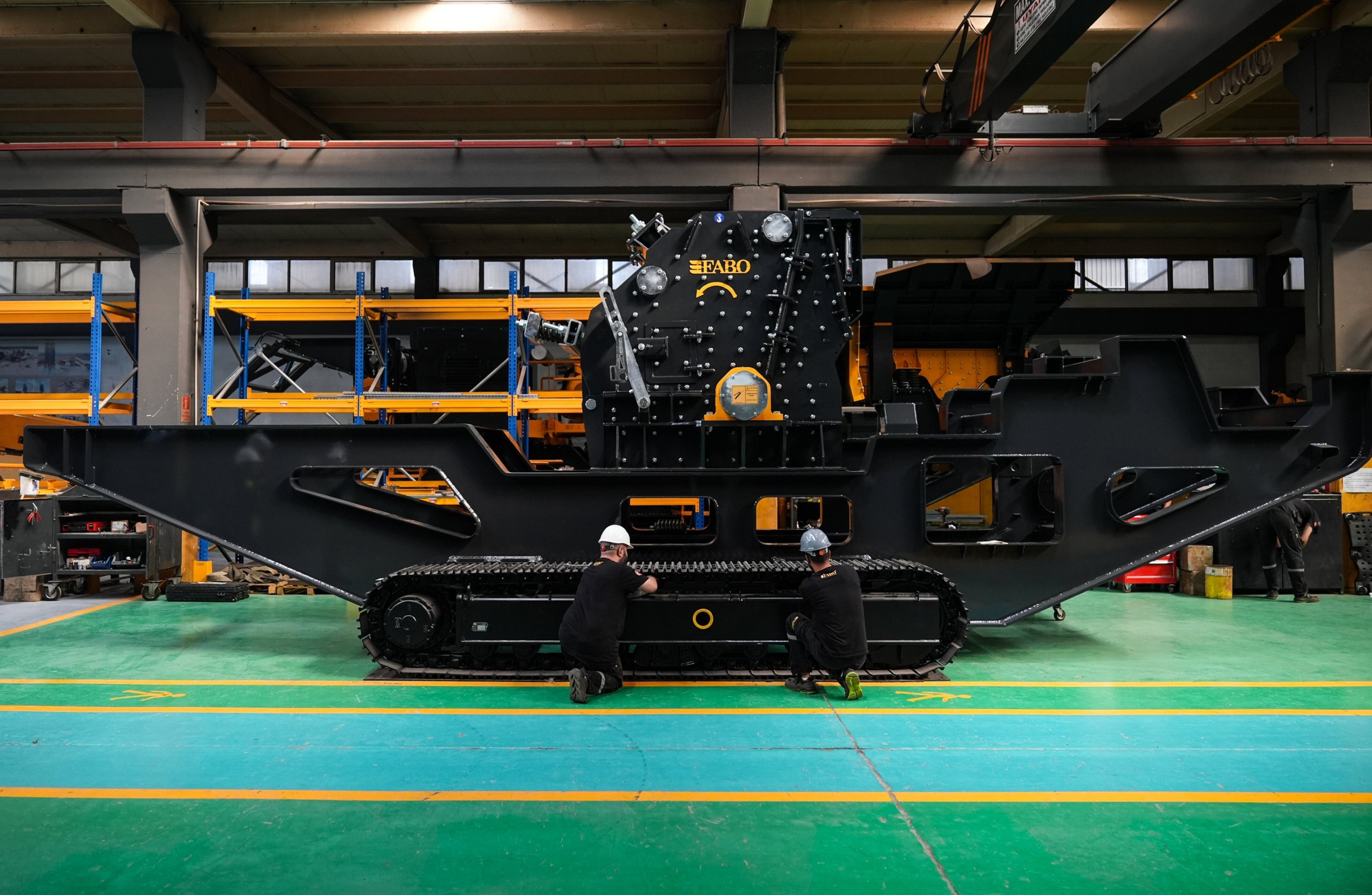 Workers are seen at a factory manufacturing machinery used in mining, construction and road building, Izmir, Türkiye, Oct. 24, 2025. (AA Photo)