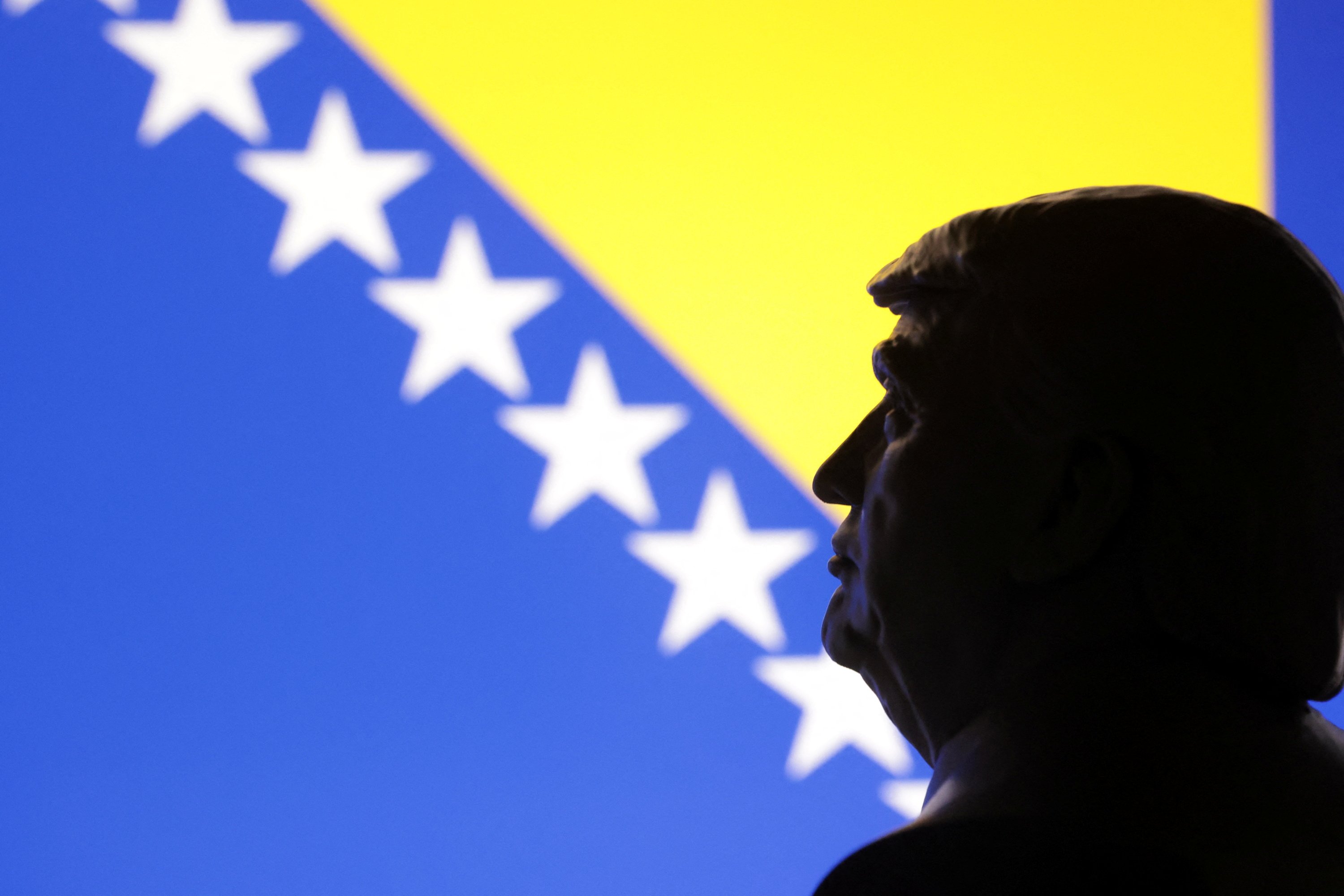 Bosnian flag and 3D printed miniature of U.S. President Donald Trump are seen in this illustration taken July 1, 2025. (Reuters Photo)