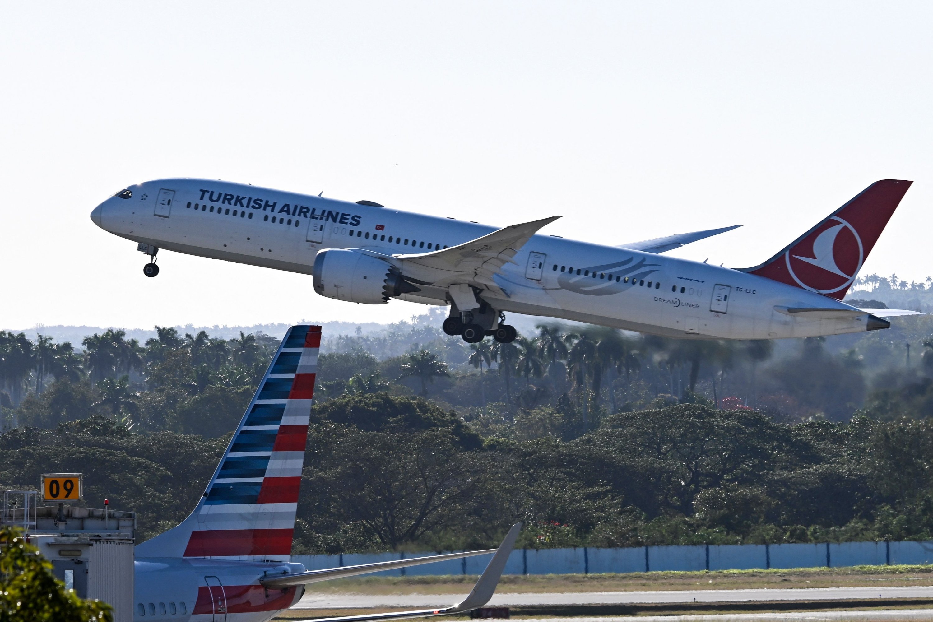 A Turkish Airlines plane takes off at Jose Marti International Airport, Havana, Cuba, Feb. 9, 2026. (AFP Photo)