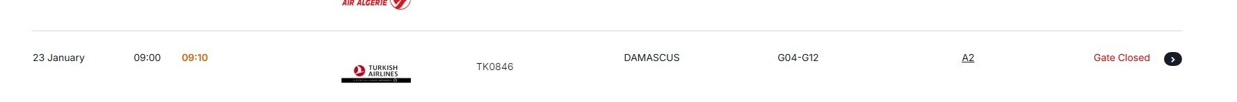 The data from Flightradar.com showed that Turkish Airlines landed in Damascus at 11:29.
