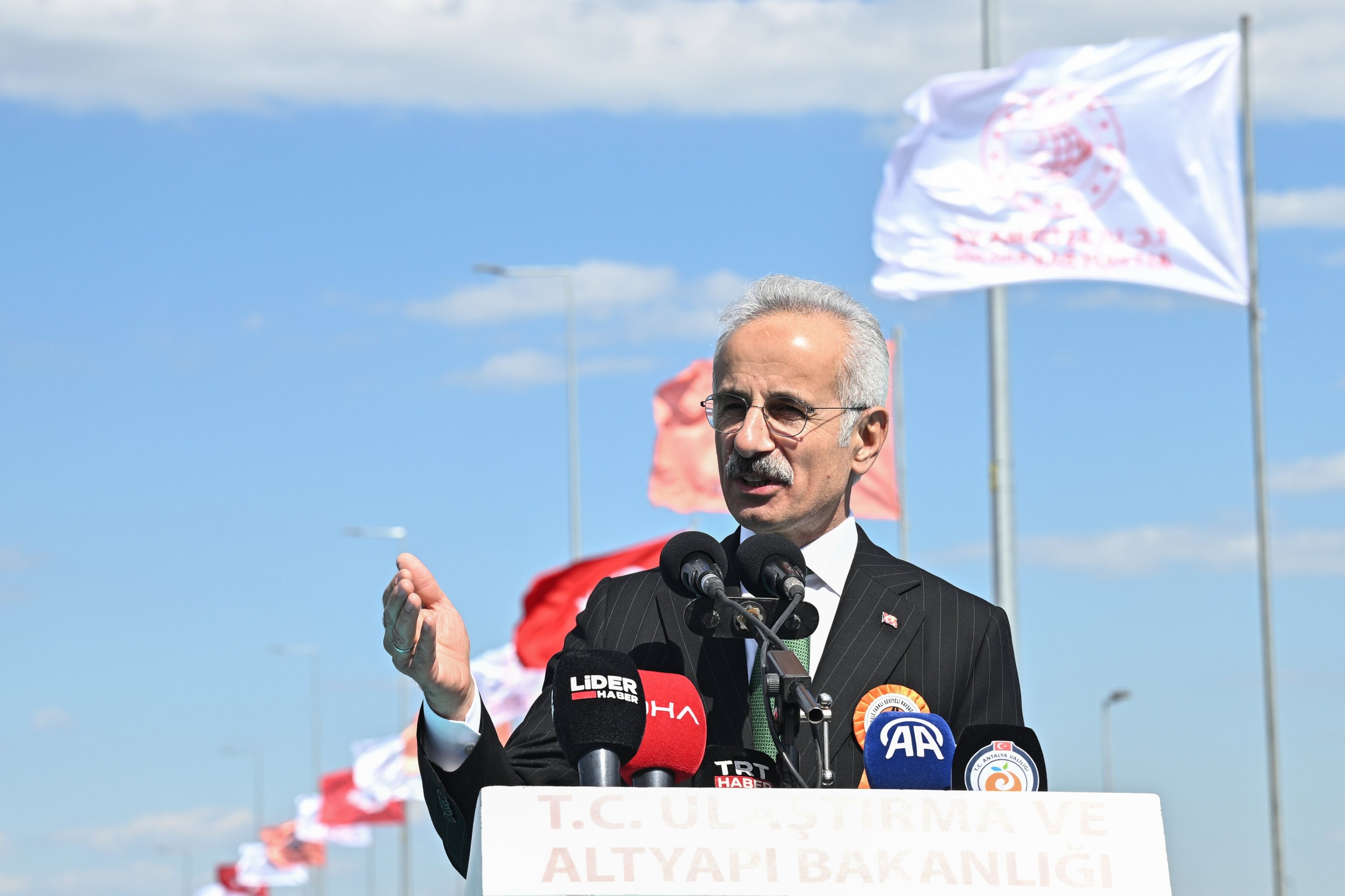 Transport and Infrastructure Minister Abdulkadir Uraloğlu speaks at an intersection opening ceremony, Antalya, southern Türkiye, April 10, 2026. (AA Photo)