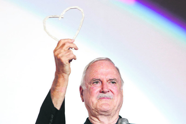 Cleese, best known as a member of the famous comedy team Monty Python's Flying Circus, received a standing ovation from fans at the open-air venue where he gave an acceptance speech.
