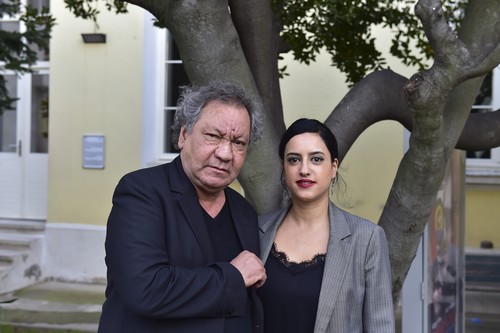 Toni Gatlif (L) and Zeynep Esra Istanbullu of Daily Sabah.