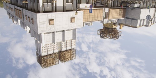 In the 1960s, and indeed in Tarkovsky's "Solaris," the future is imagined as one where we would be living in space. But the future is here, and we are still very much living in congested cities- but Venkov reimagines, liberates the city from the earth, and we very much get the feeling that the buildings we are looking at are space stations. The long Soviet blocks with identically measured windows unmoored from the earth, floating upside down in an ever-expanding blue space are the very image of the space ships we know from sci-fi films. The solemn hymn we've been hearing as we watch the camera move in this skyline, it turns out, is a reworking of the Soviet Anthem, and so the whole film itself becomes an homage to the dreams of high-Sovietism, here brought to us by placing the camera at an unexpected angle, an apt metaphor for revisionist readings of history.