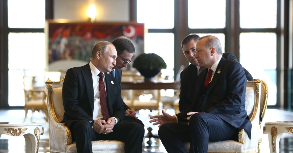 President Erdou011fan and his Russian counterpart President Putin during a one-to-one meeting at the Presidential Complex, in the capital Ankara, April 3, 2018.