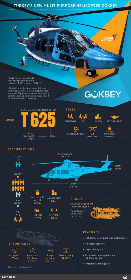 At a grand ceremony in Ankara Thursday that launched the Turkish Defense Industry Summit held under the auspices of the Presidency, President Recep Tayyip Erdoğan announced the name of Turkey's first indigenous multi-role helicopter, the T625, as Gökbey, a name agreed upon after much consultation.
