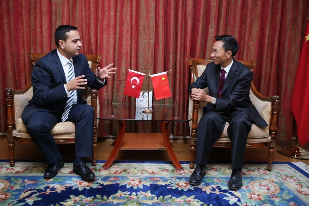 People's Republic of China's ambassador to Ankara, Yu Hongyang (R) and Daily Sabah's Ali Ünal