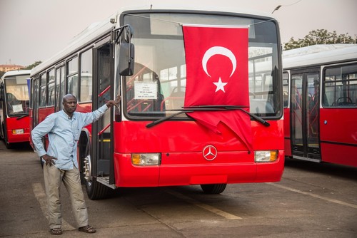 A ceremony for some 50 public buses, sent by Turkey as promised by President Recep Tayyip Erdoğan to the Guinean people last year, was held on Monday, in addition to Turkish Airlines launching its first direct flight from Istanbul to Guinea's capital Conakry on the same day.