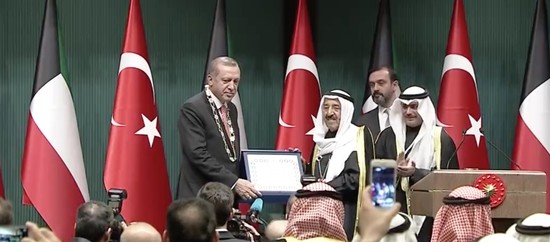 President Erdoğan and Sheikh Sabah al-Ahmad al-Jaber al-Sabah exchanged awards late in a ceremony held in the Presidential Complex in Ankara as Erdoğan received the Order of the Mubarak the Great, which is the highest award given by Kuwait