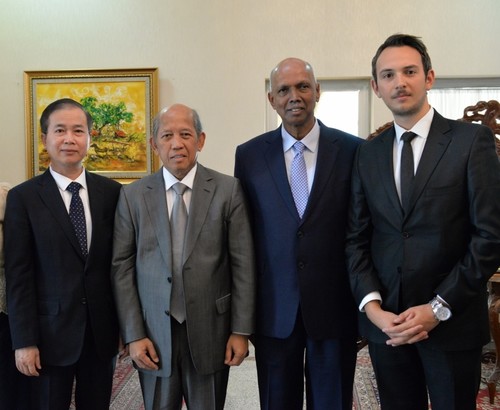 Vietnamese envoy Pham Anh Tuan, Indonesian envoy Wardana, Singaporean envoy Selverajah with Daily Sabah's Yunus Paksoy (right)