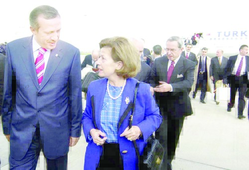 The first female envoy of Turkey, who was appointed in 1982, Filiz Dinçmen with President Recep Tayyip Erdoğan before his presidency.