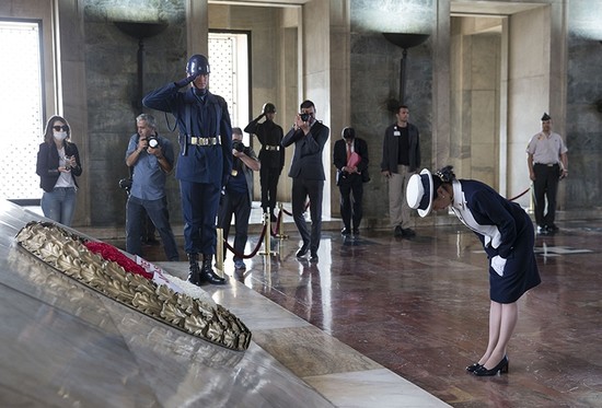 The princess showed respect by laying a wreath and bowing before the mausoleum. She also signed the Anıtkabir private guest book.