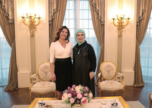 First lady Emine Erdoğan on Tuesday hosted Greek Prime Minister Alexis Tsipras' partner Peristera "Betty" Baziana at the State Guesthouse in the capital Ankara.