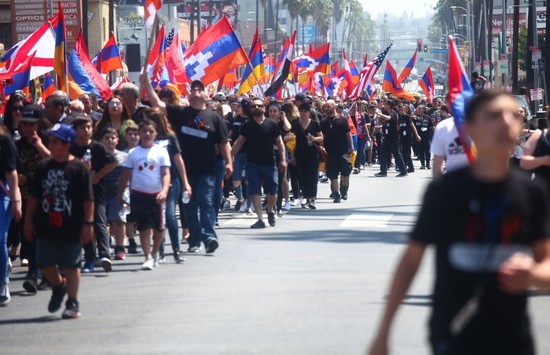 Crowds of Armenian Americans also marched Wednesday in Los Angeles, where the largest Armenian population in the U.S. and one the world's largest Armenian communities outside of Armenia is located. The march has become a major event which includes a protest outside the Turkish Consulate.