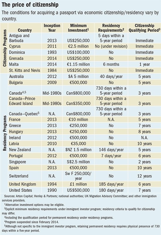 Granting citizenship to foreigners in return for a determined amount of investment is a global phenomenon applied in many developed and developing countries, such as the U.S., Canada, the U.K., France, Australia, Dominica and Bulgaria. The growing phenomenon of "buying citizenship" is defined as "economic citizenship" by the International Monetary Fund (IMF).