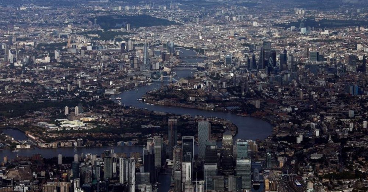 Canary Wharf and the City of London financial district in an aerial view of central London, Britain, Aug. 8, 2019. (Reuters Photo)