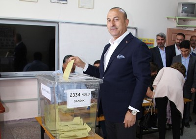 Foreign Minister Mevlüt Çavuşoğlu cast his ballot at Ayşen Cengiz Urfalıoğlu Elementary School in southern Antalya province's Alanya district.