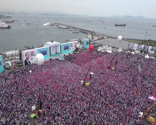 Hundreds of thousands of voters came together to attend a Justice and Development Party (AK Party) election rally in Istanbul's Yenikapı square, the results of which are seen as a determining factor for elections in the country. Speaking at the meeting, President Recep Tayyip Erdoğan said that TL 236 billion ($50 billion) has been invested in an abundance of projects in Istanbul during the last 16 years, and also that the city's vision for education, infrastructure and commercial life has been greatly improved. The president added that the AK Party government increased the number of universities from 21 to 57 and a great number of projects to make Istanbul a cultural center are continuing, including rebuilding of the city's symbolic Atatürk Cultural Center in the central Taksim district. The plan for a new cultural center to replace the previous center was unveiled in November 2017. The venue, set to open in 2019, will have a 2,500-seat opera hall, almost doubling the capacity of the former hall. It will have concert halls, theaters, cinemas, libraries and design workshops, as well as restaurants and cafes. An 800-seat theater, 1,000-seat conference hall, 285-seat cinema and a 250-seat smaller theater are among the other features of the new center.