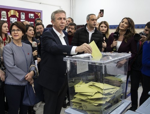 CHP's mayoral candidate Mansur Yavaş also voted in the capital. with his wife and daughter. "The voters' will is the highest decree," Yavaş said after he cast his vote.