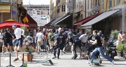 Police say 35 people have been wounded in clashes that erupted between England and Russia soccer fans before and after a match at the European Championship.