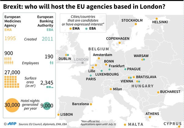 The new host countries of the European Medicines Agency (EMA) and the European Banking Authority (EBA) will be decided by a vote in November.