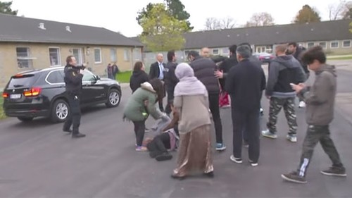 A video posted by the Danish Broadcasting Corporation (DR) showed Støjberg being escorted by her security detail and police officers as a crowd of disappointed refugees protested her short visit. Her government-issued car then tried to make a quick escape but hit a refugee woman who was trying to stop the vehicle from leaving, making her fall onto the ground.