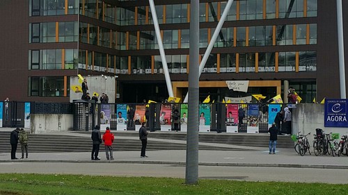 The supporters, who broke some of the building's windows, were removed by police. Employees at the building were moved to other floors under security measures.