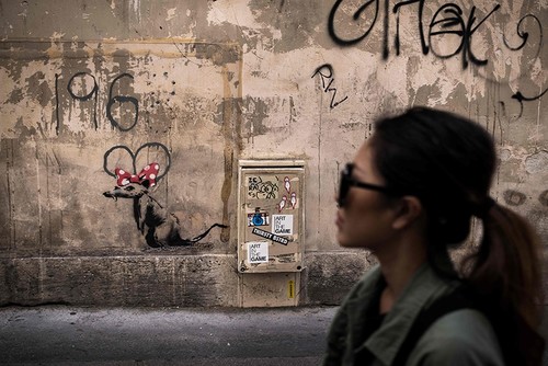 One of Banksy's trademark rats -- his avatar for wronged ordinary people -- sits under the legend "May 1968" wearing a Minnie Mouse bow. The Disneyland Paris theme park just outside the French capital is now one of its biggest employers.