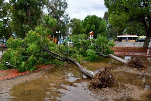 The storm's heavy rainfall and strong winds knocked down trees and flooded houses and workplaces.