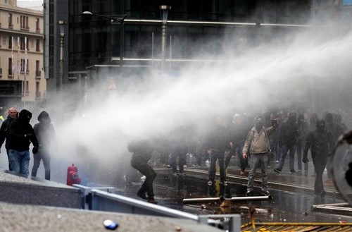 Demonstrators threw stones and other objects at the European Commission building in the city, Belga reported.