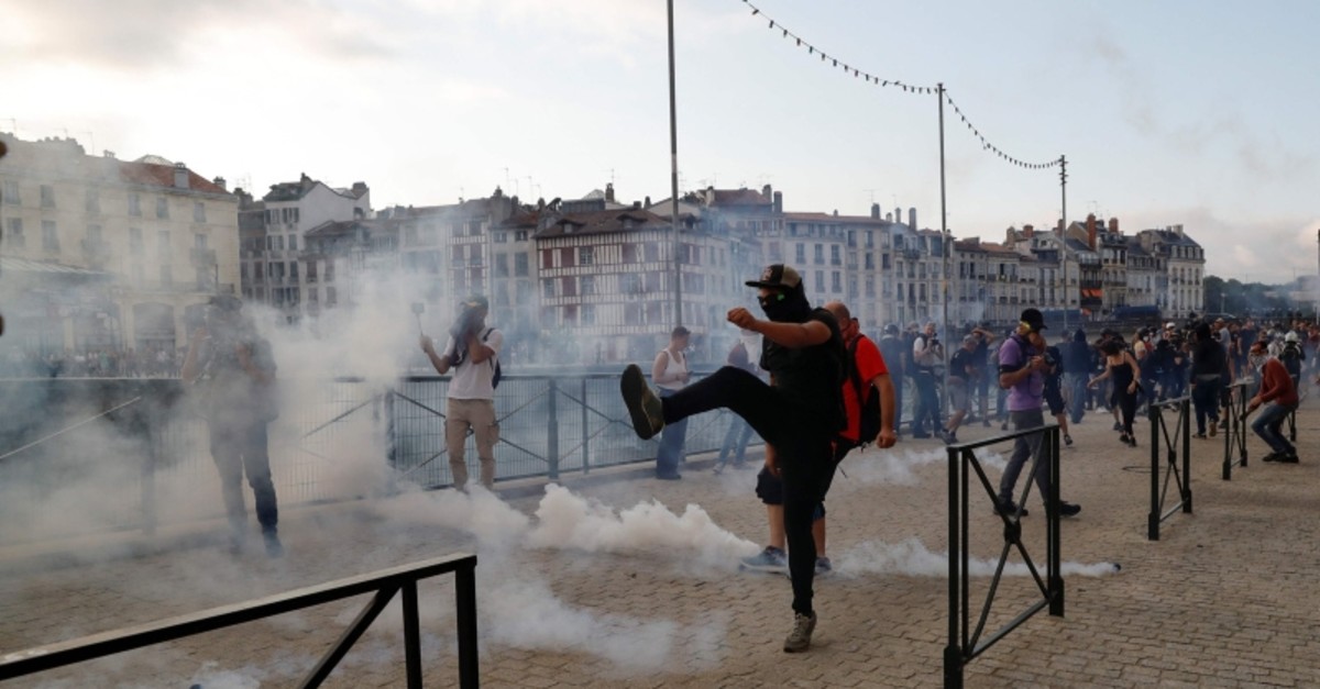 Protesters threw stones at police who were blocking access to a bridge in the neighboring town of Bayonne, a dpa reporter observed. Police responded with tear gas and water cannon.