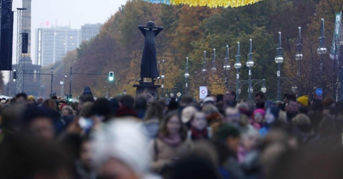 People gather ahead of the start of the public show for the 30th anniversary of the fall of the Berlin Wall, on November 9, 2019. (AFP Photo)