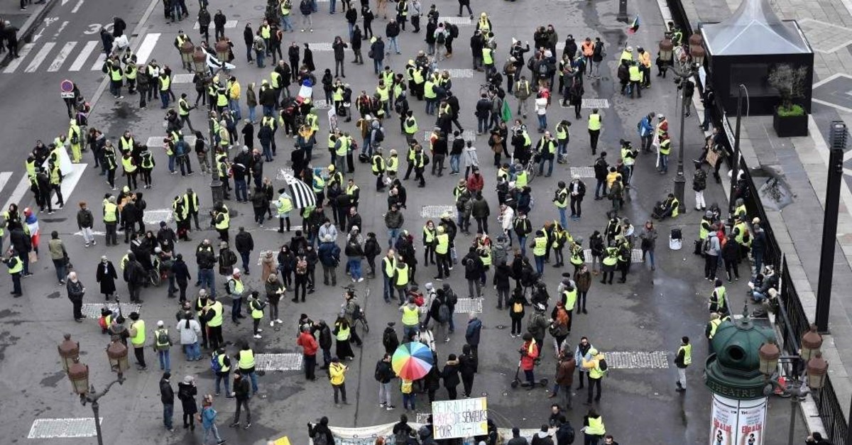 Unions organizing the march asked yellow vest protesters to join them. The march coincided with the 59th consecutive Saturday of marches by the yellow vest movement that seeks social and economic justice.