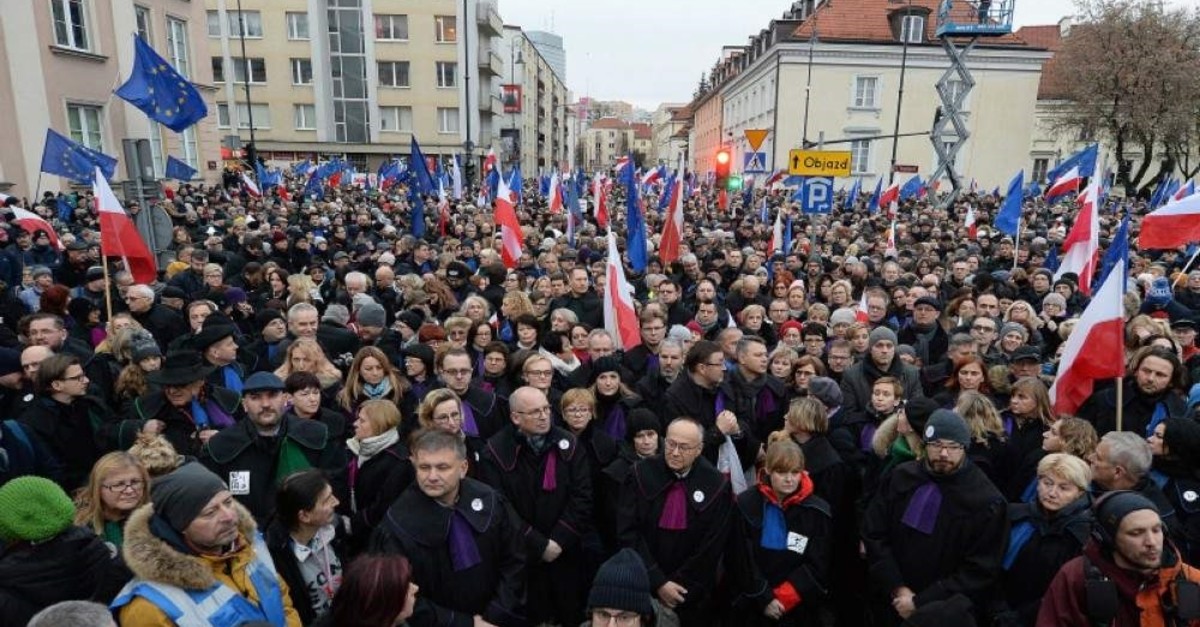 On Saturday, judges traveled to Warsaw from across Europe in a show of solidarity with Polish judges protesting a bill that would allow the government to fire those who issue rulings that officials don't like. They marched silently through Warsaw, many dressed in their judicial robes.
