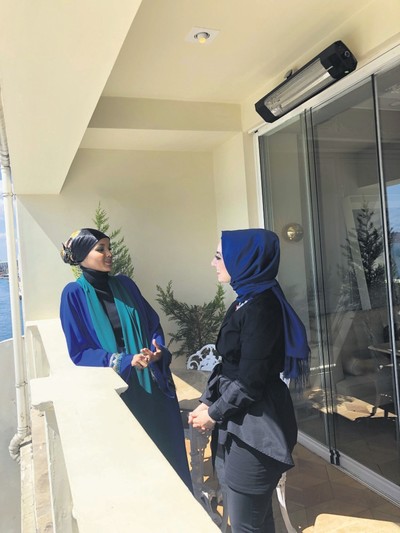 Halima Aden (L) talks to Daily Sabah's Şeyma Nazlı Gürbüz during a visit to Istanbul for the Modest Fashion Week.