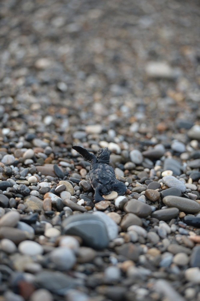 Polat counts the eggs in the nest and keeps statistics of the hatchlings; sometimes moving the hatchlings to more secure shorelines where predators such as seagulls and crabs are not as much of a threat. Polat and other volunteers make sure around 10,000 hatchlings reach the seas in one year.